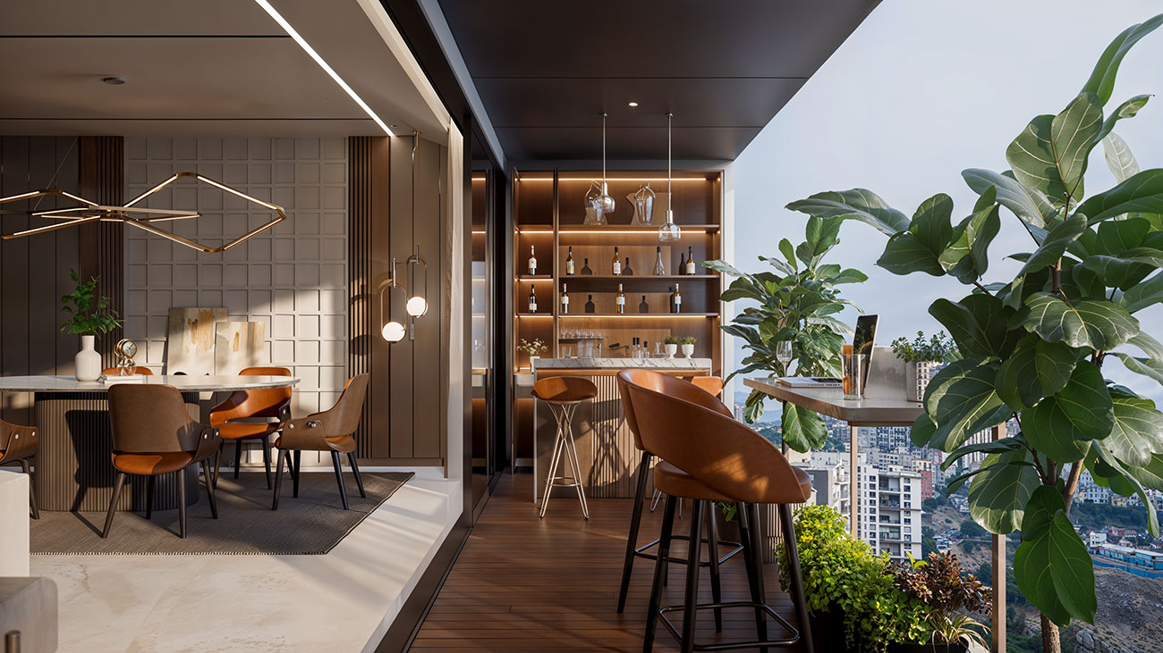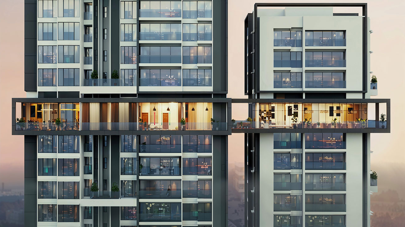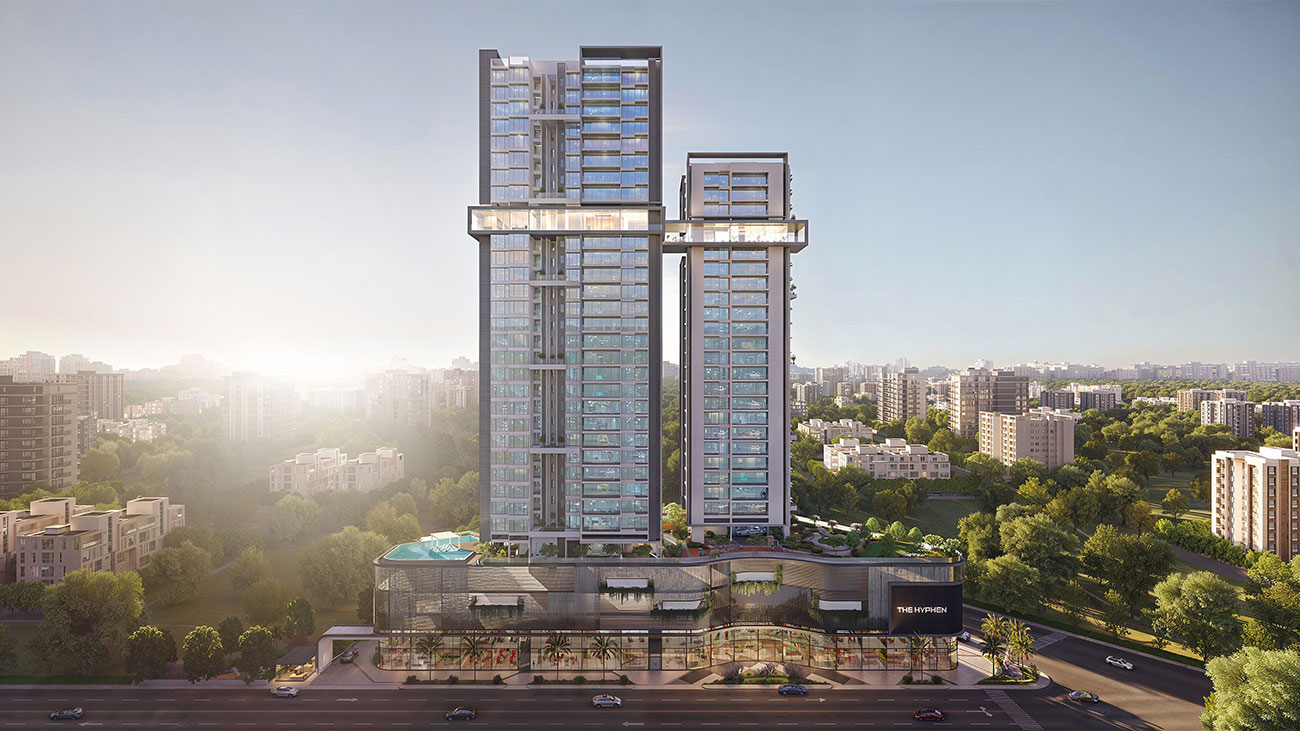 Qubit’s 3D visualizations of The Hyphen redefine luxury living in South Pune. This iconic 115-meter tall residential project sets a new standard for the neighborhood, blending international living philosophies with modern design. The project offers a seamless integration of functionality and elegance, creating a truly elevated living experience for its residents.